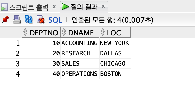 -- DEPT 테이블의 모든 컬럼에 대한 모든 데이터가 조회